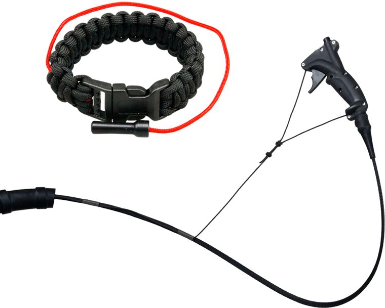 The Kill Switch magnet attached to your wrist starts the engine when inserted into the JETSURF Control Handle. When the key is disconnected from the handle the engine shuts off, ensuring an extremely safe experience.